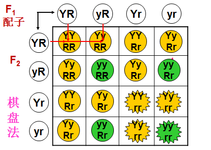 如果用Y(y)和R(r)来表示粒色和粒形,那么纯种的黄色圆粒和纯种的绿色皱粒豌豆分别有2对遗传因子,黄色圆粒可用YYRR表示,绿色皱粒可用yyrr表示。