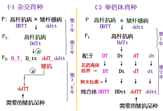②人工获得单倍体的方法:__花药离体培养__、__秋水仙素处理___