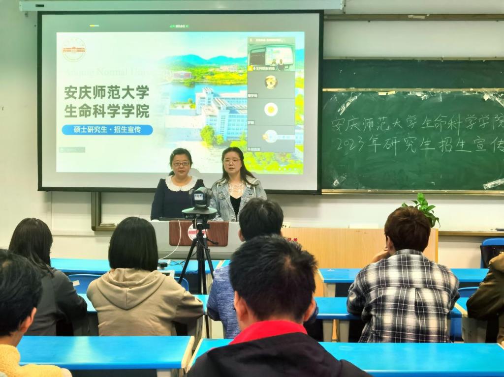 为了更好地宣传安庆师范大学生命科学学院的办学优势、学科特色及招生政策,提升研究生生源质量,10月16日下午6:30,安庆师范大学生命科学学院在G101召开2023年硕士研究生招生宣传会,由穆丹老师与张明珠老师主持宣传活动,与前来参会的同学们进行了交流。