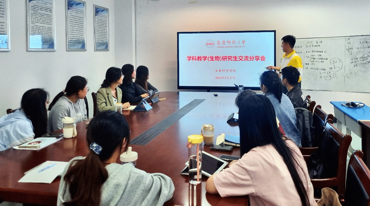 近日,安庆师范大学生命科学学院举行学科教学(生物)研究生经验分享会。学科教学(生物)专业研三学生李昊成倾情分享了自己在生物教学中的宝贵经验。会议由生命科学学院副院长穆丹教授主持,在校学科教学(生物)研一研二的学生参加。