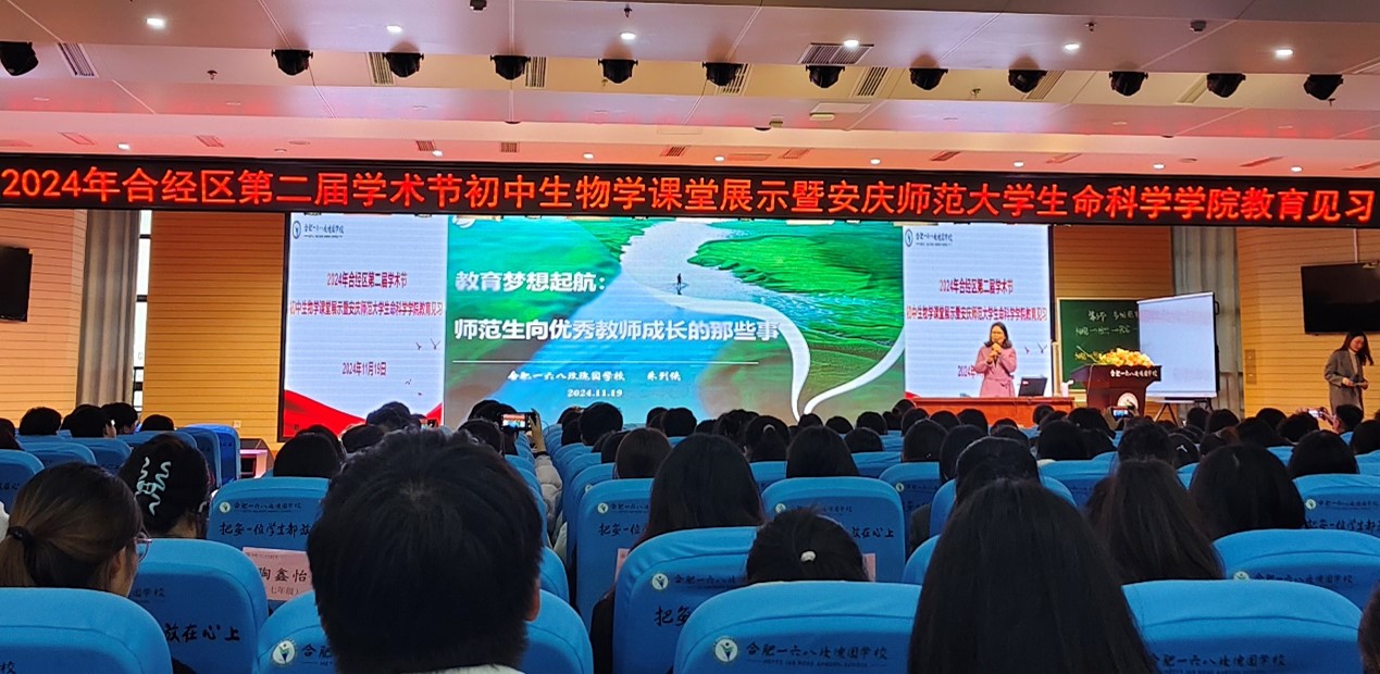 合肥一六八玫瑰园学校侯媛媛老师进行了初中生物学观摩课展示;朱列侠老师为同学们做了以“教育梦想启航:师范生向优秀教师成长的那些事”为题的主题讲座,同学们现场认真观摩,感受到了生物学实验教学的节奏及氛围,学习到了生物学课程优秀的教学方法。