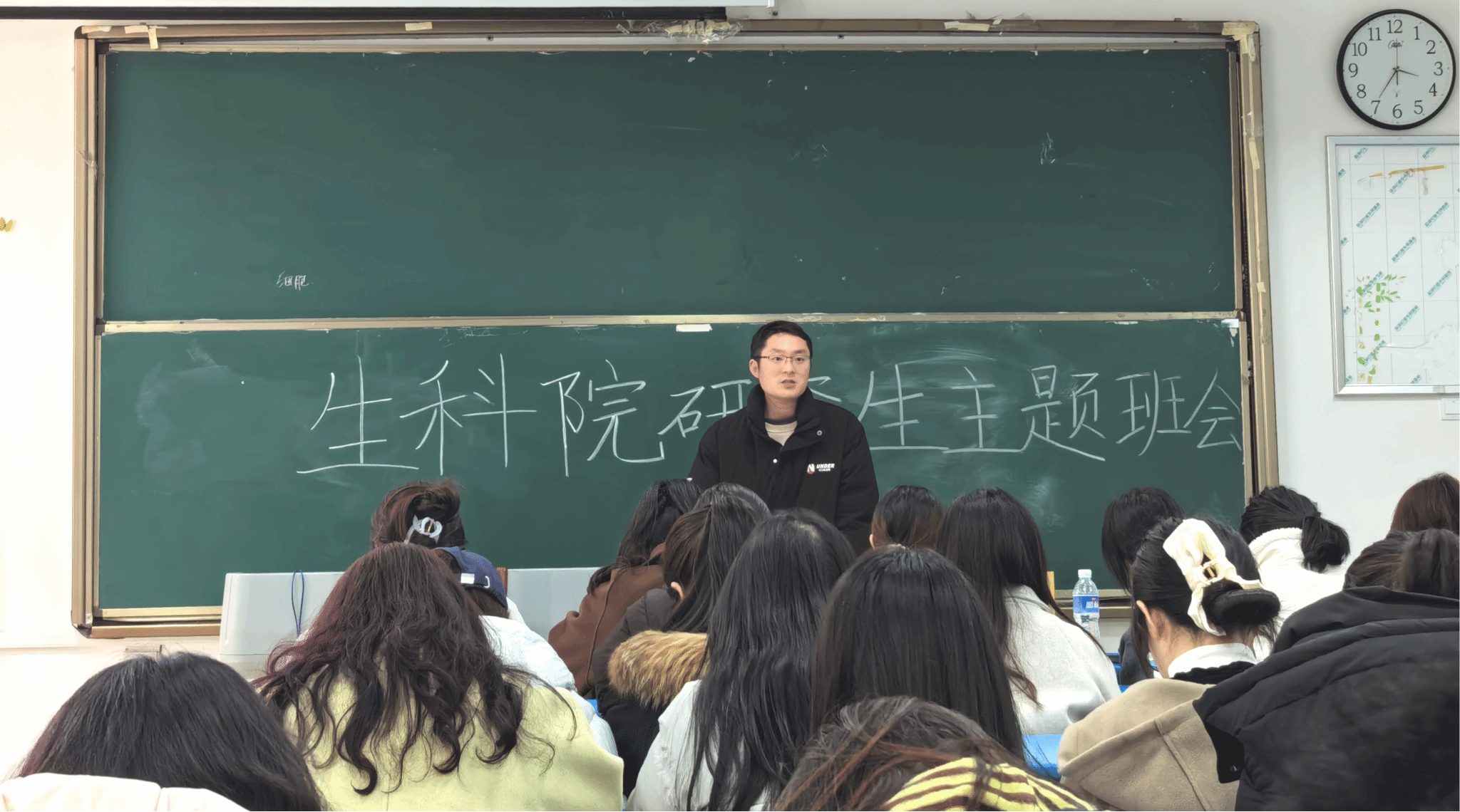 2月26日,生命科学学院在G101召开新学期硕士研究生“坚持不懈,砥砺前行”主题班会。此次班会围绕校园安全、学业规范、毕业就业等关键议题展开,学院辅导员陈晨老师、翟玉山老师出席本次班会,为学生们答疑解惑、指引方向,全体研究生参会。
