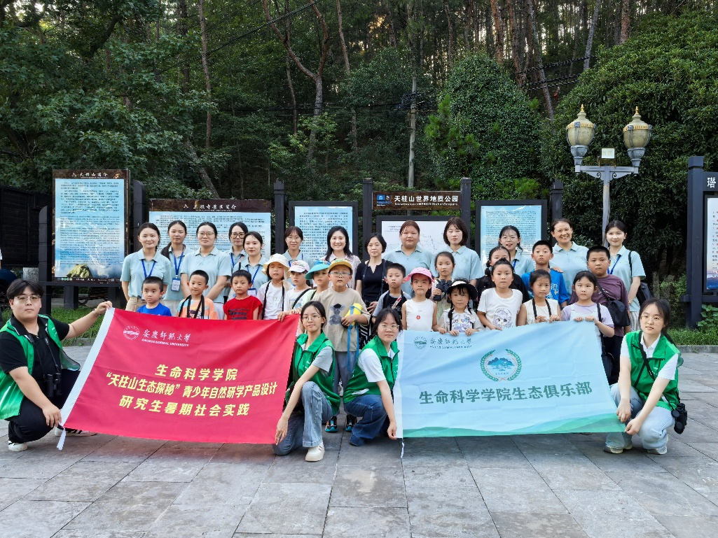 近日,安庆师范大学生命科学学院师生走进潜山市天柱山研学基地,开展了“天柱山生态探秘”自然研学研究生暑期社会实践活动。活动结合天柱山世界地质公园及皖河湿地的自然资源,设计并实施了一系列科学探究与艺术创作相结合的课程,旨在提升青少年的生态文明素养,推动生态资源向教育载体转化。