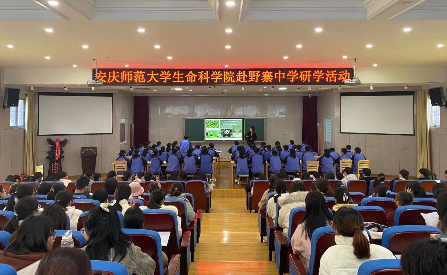 2021年12月10日,生命科学学院组织了2021级学科教学(生物)专业研究生和2019级生物科学专业本科生赴“安徽省示范高中”潜山野寨中学开展教育见习活动,本次活动由吴彦副院长及6名学院博士教师带队。