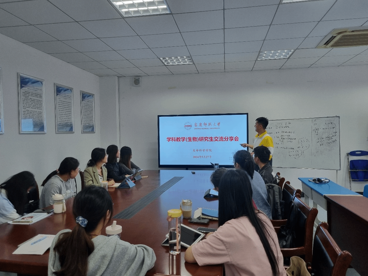 近日,安庆师范大学生命科学学院迎来了一场别开生面的交流分享会。活动在G411教室举行,研一、研二的学科教学(生物)研究生参加。即将毕业的研三学生李昊成倾情分享了自己在生物教学中的宝贵经验。