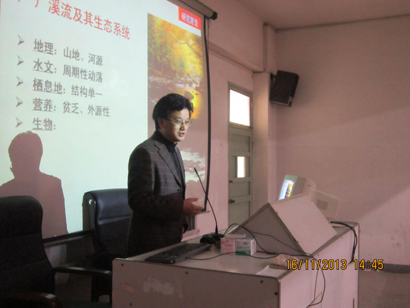11 月 16 日 下午,安徽师范大学严云志教授应邀在菱湖校区414教室作了“溪流鱼类生态学研究——以皖南山区为例”专题学术讲座。生命科学学院100多名师生聆听了报告,报告会由生命科学学院副院长魏和平博士主持。